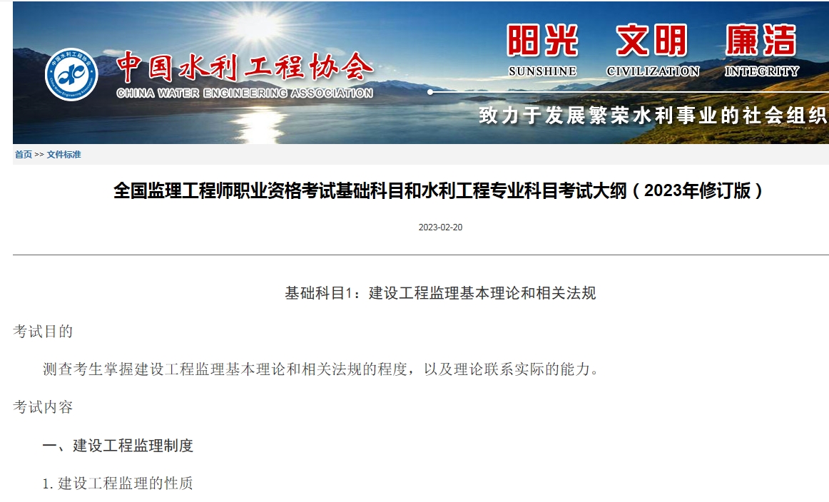 全国监理工程师职业资格考试基础科目和水利工程专业科目考试大纲( 2023年修订版)