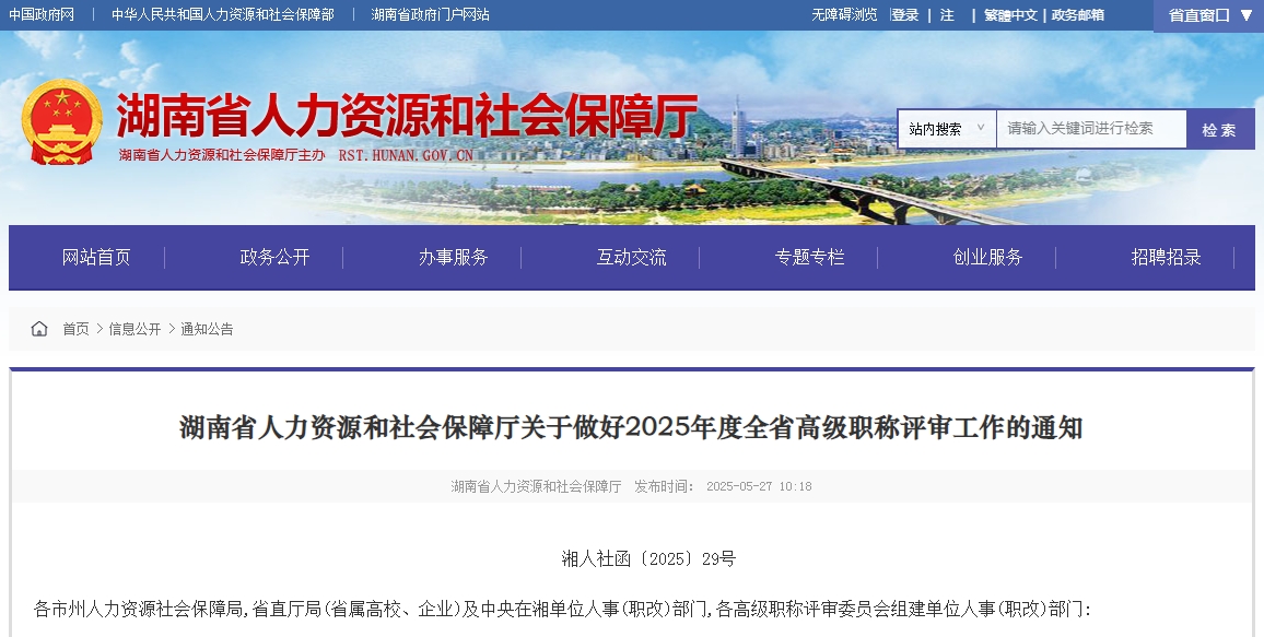 各市州人力资源社会保障局,省直厅局(省属高校、企业)及中央在湘单位人事(职改)部门,各高级职称评审委员会组建单位人事(职改)部门: