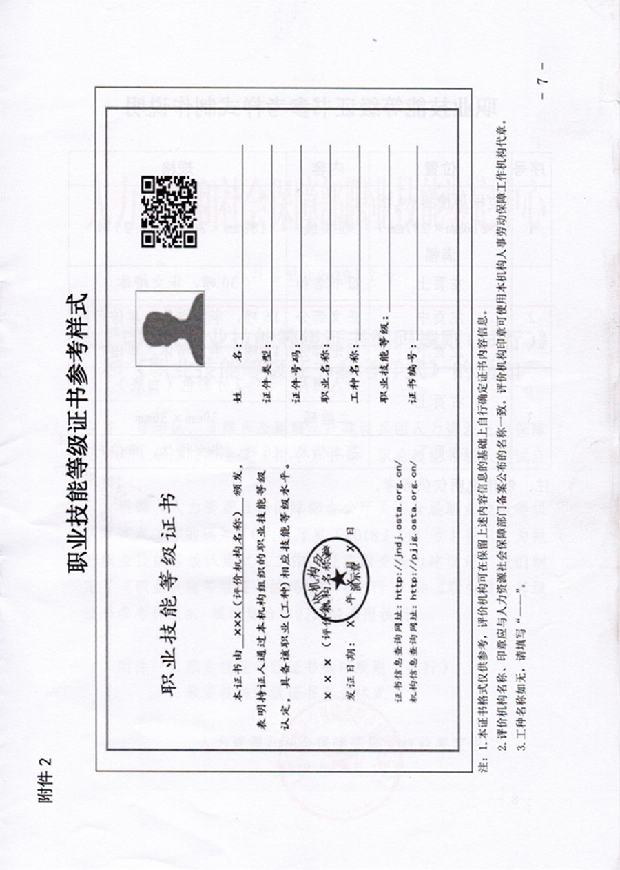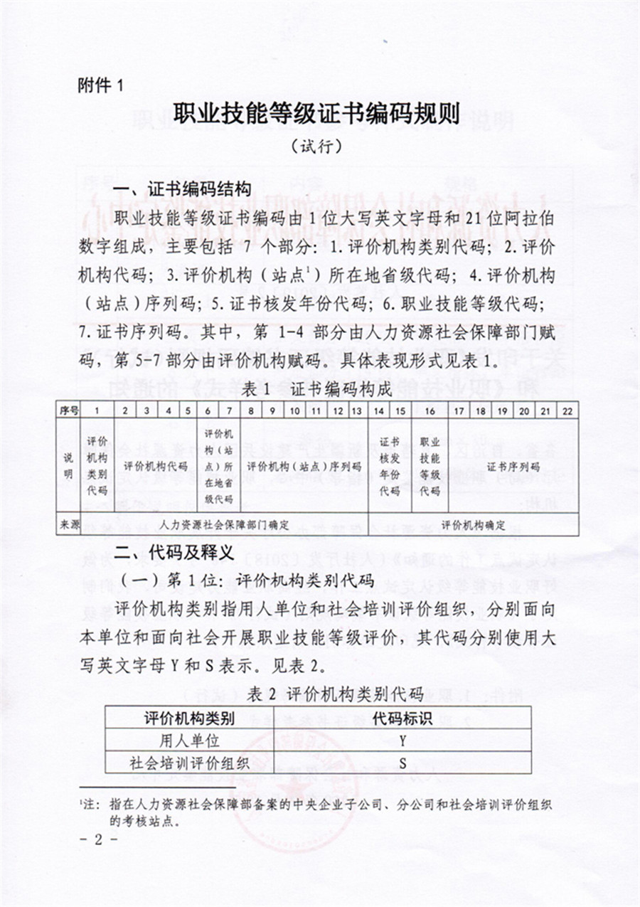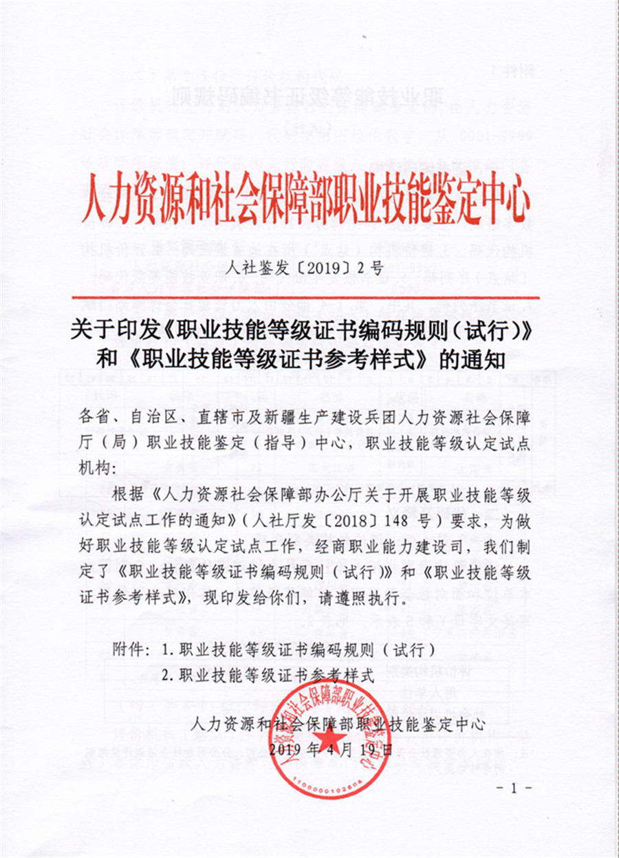 关于印发《职业技能等级证书编码规则(试行)》和《职业技能等级证书参考样式》的通知