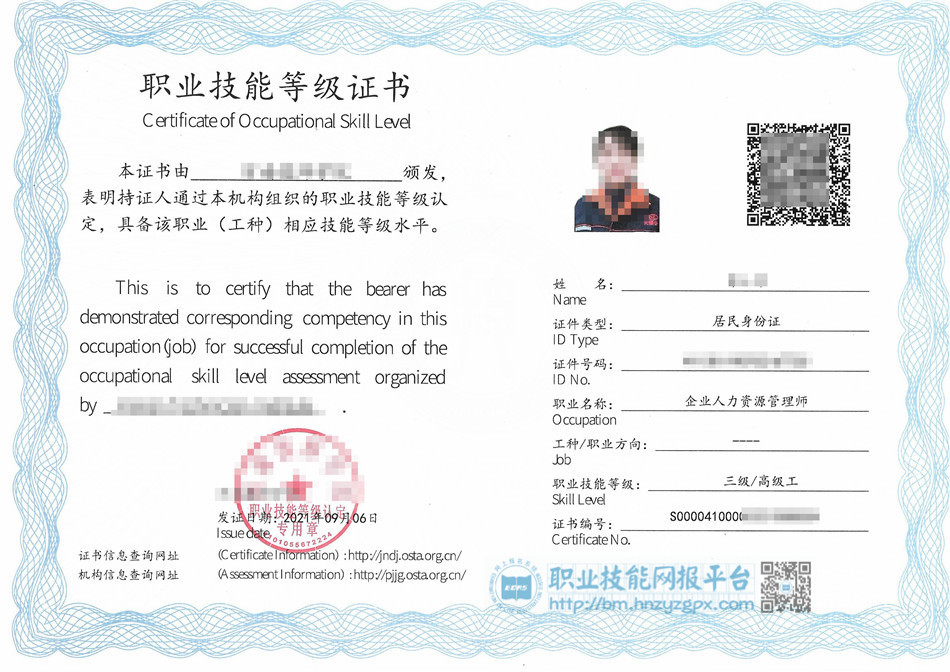 企业人力资源管理师(技能证书)也就是以前的企业人力资源管理师国家职业资格考试,是人力资源和社会保障部推出的水平评价类职业资格。是由人社局和各省职业技能鉴定指导中心统一组织考试。人力资源管理师考试对其知识和能力的综合评定以及职业素质的检验,持有该资格证书者,表明其已具备了从事人力资源管理所必备的学识和技能,也是企业管理工作者向更高层次发展的新起点。按照国家职业标准分为人力资源管理员(国家职业资格四级)、助理人力资源管理师(国家职业资格三级)、人力资源管理师(国家职业资格二级)、高级人力资源管理师(国家职业资格一级)。凡考核合格者,由人力资源和社会保障局和当地职业技能鉴定指导中心联合颁发相应等级的职业资格证书,实行统一编号登记管理,在国家职业资格证书全国联网查询,是相关人员求职、任职、晋升、包括出国等的法律上的有效证件,可记入档案、全国通用。