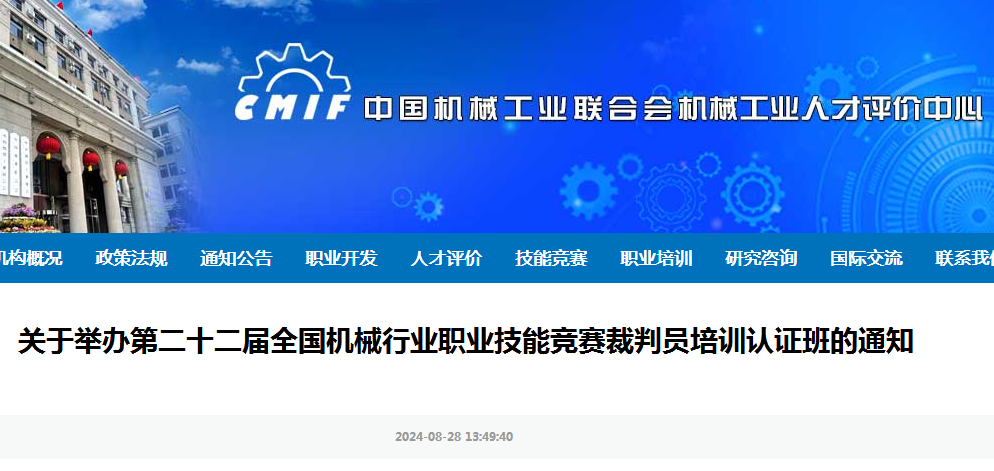 为了科学严谨、公平公正的做好2024年全国行业职业技能竞赛——第二十二届全国机械行业职业技能竞赛的执裁工作,保证竞赛执裁人员的执裁水平和专业技能,根据《国家职业技能竞赛技术规程》和《国家级职业技能竞赛裁判员管理办法》等有关规定,竞赛组委会办公室(机械工业人才评价中心)定于2024年9月6日举办第二十二届全国机械行业职业技能竞赛模具工(模具数字化设计与制造)、装配钳工(汽车装调与运维)、焊工(智能焊接)三个赛项裁判员培训认证班。现将有关事宜通知如下: